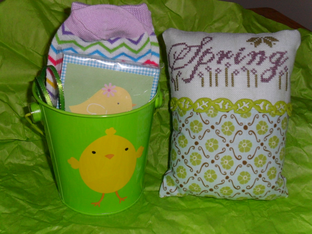 I received my Easter/Spring exchange from Fiona on Saturday. Fiona stitched and finished a very cute Easter egg. I just love it. The bunnies, the flowers, the little pouch that I could put scissors in and look at the sweet pins stuck in ... just adorable! She also made me the cutest ort bag ... yep that's a frog holding the ort bag ... it is too cute and will be well used and hopefully it will keep the frogs away! She also included a coffee pattern and coffee themed fabric. I've never seen this coffee design before and I'm itching to start it ... think I'll stitch it in red :) Thank you Fiona for doing this personal exchange with me. I had a blast! and I love everything.